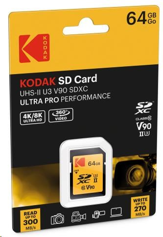 Kodak paměťová SD karta 64GB UHS-II U3 V90 Ultra Pro