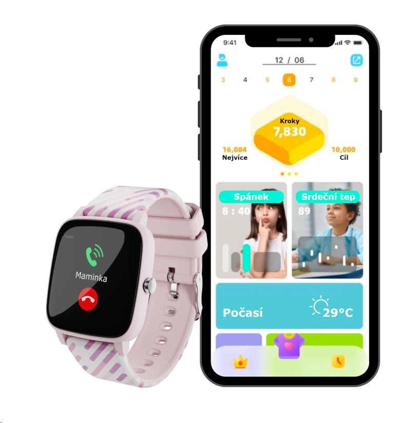 Prostředí hodinek a aplikace je kompletně v češtině, takže ovládání nebude pro dítě žádný problém. Hodinky lze přepnout do dalších jazyků a podporovat tak výuku angličtiny a dalších jazyků.