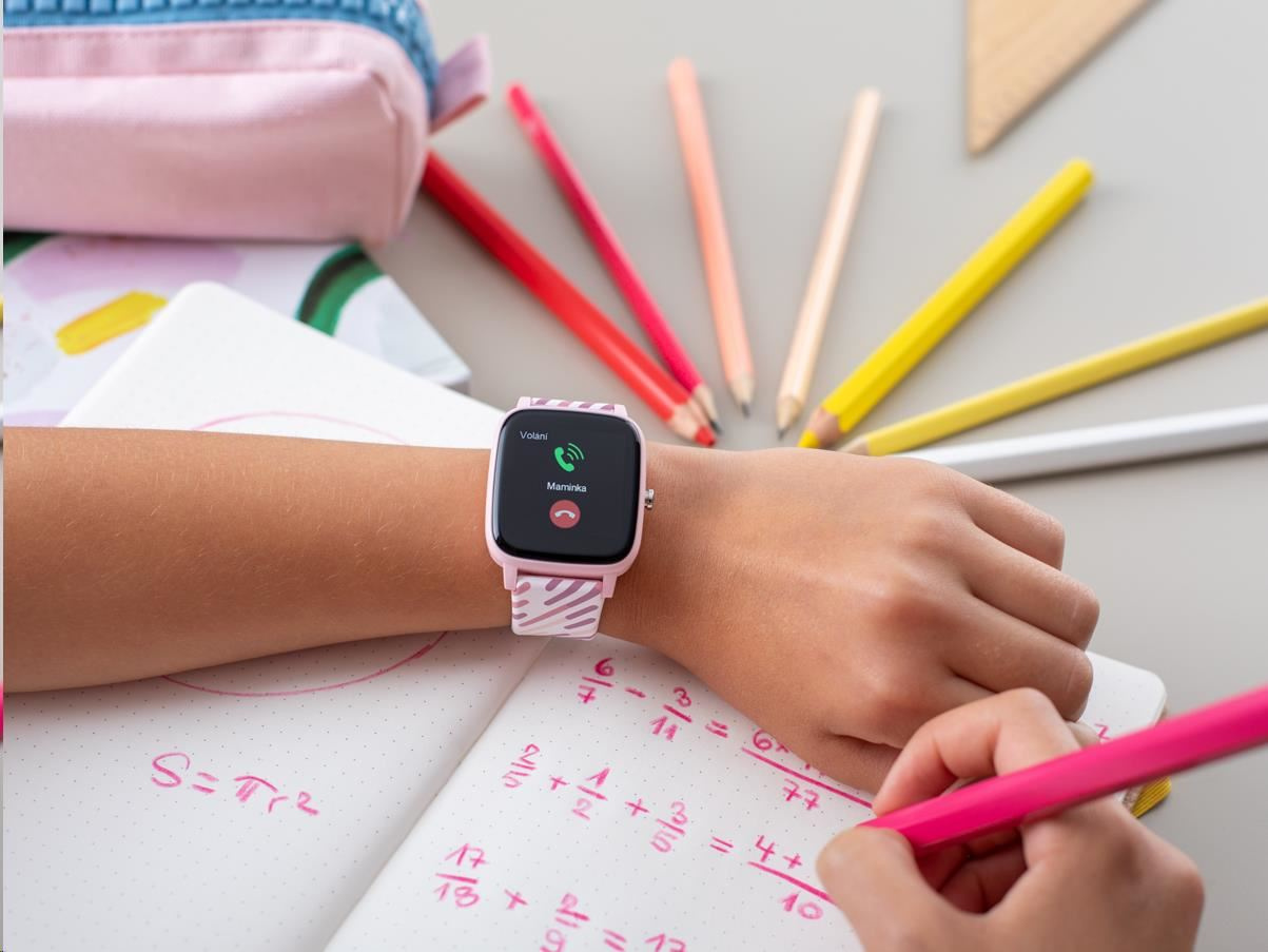 Hodinky upozorní dítě na příchozí hovor, SMSku, novinku z TikToku nebo dalších appek. Jednoduše zavibrují a na displeji dají vědět, o co se jedná. Rozumí si s Androidem i iOS. Telefon tak klidně může zůstat při vyučování v tašce.