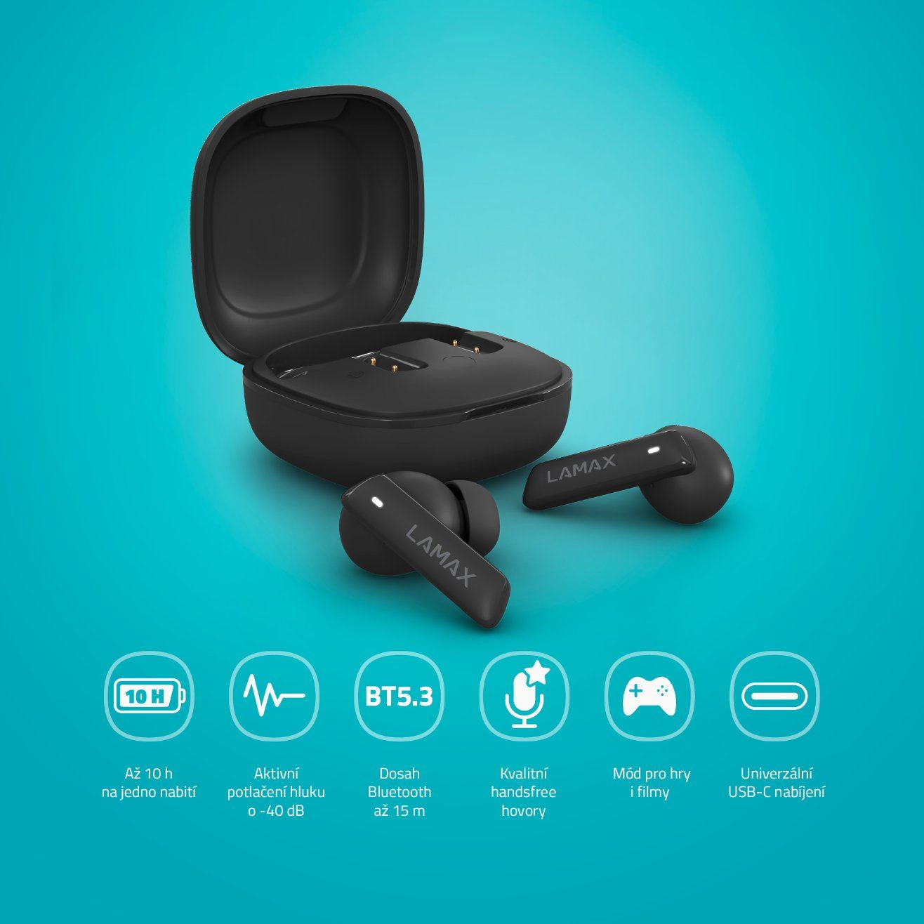 Nejlepší podoba zvukuPokud občas potřebuješ uniknout z reality všedních dnů do svého vlastního světa, pak jsou pro tebe LAMAX Clips1 ANC tou nejlepší volbou. Bezdrátová špuntová sluchátka jsou vybavena špičkovým hybridním ANC pro dokonalý potlačení okolního hluku, aby tvůj poslech nic nerušilo. Jakmile ale potřebuješ vnímat dění kolem sebe, přichází na scénu Transparency mode. Poslouchat můžeš nerušeně až 10 hodin a dalších 34 hodin ti poskytne pouzdro. Pro dobití pak slouží USB-C kabel. Sluchátka se automaticky spárují s tvým zařízením, a to bleskově díky Bluetooth 5.3. O dokonalou kvalitu a čistotu zvuku se postará kodek AAC a lepší požitek z her a filmů poskytuje low latency Herní mód. Vše ovládáš dotykově na sluchátkách a při telefonování oceníš kvalitu zabudovanýho mikrofonu. Sluchátka podporují taky hlasový asistenty.
