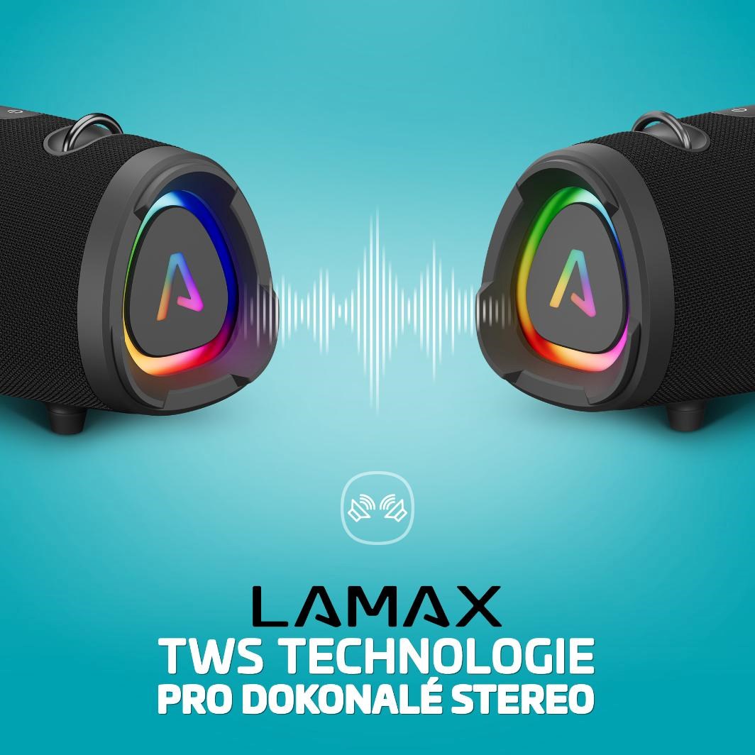 Můžeš dělat co chceš, poslouchat muziku nebo podcasty, ale na jedno se můžeš spolehnout, a to parádní zvuk s bohatýma basama a čistýma vejškama. Dvoupásmový reproduktory zkrátka vypustí jen kvalitu. Díky výkonu až 60 W už ozvučíš slušnej prostor, ale kdyby to nestačilo, true wireless stereo ti dává prostor připojit další LAMAX Eclipse1 a výkon znásobit. Baterie repráku vydrží frčet až 9,5 hodiny, pak ho dobiješ přes USB-C a jedeš dál.