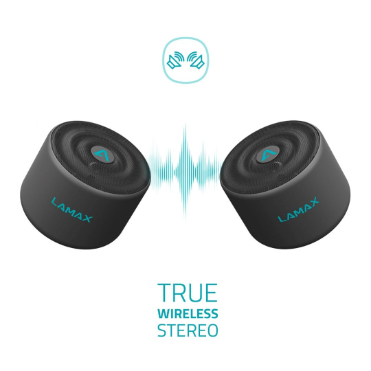 Vezmi ještě jeden LAMAX Sphere2 a pomocí funkce TWS si udělej pořádnou stereo soustavu. Výkon se ti znásobí a bez zpoždění můžeš hrát hned ze dvou reproduktorů.