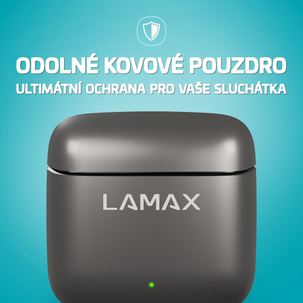 Špunty do uší a jsi v jiným světě, bez hluku z MHD nebo diskutujících kolegů v práci. LAMAX SteelDots3 ANC aktivně potlačí okolní zvuky, ať si můžeš užívat svůj nadupanej playlist nebo chytrý podcasty. Kontakt s realitou ale udržuje transparentní režim pro tvoji bezpečnost. Čistej a vyrovnanej zvuk každýho tónu ještě podporuje kompatibilita s kodeky AAC a SBC. Taky mikrofon je kvalitka, takže při volání nebo videohovorech tě všichni jasně uslyší. Zapomeň na rozmotávání kabelů, Bluetooth 5.3 tě okamžitě automaticky připojí. Ovládání zvládneš bez návodů, je fakt snadný, dotekem vyřešíš vše. Když si mákneš při sportu a pot teče proudem, krytí IPX5 si s tím hravě poradí. Všechny tyhle výhody si můžeš užívat až 8 hodin na jedno nabití a ještě další máš v bytelným kovovým dobíjecím pouzdře, takže suma sumárum až 30 hodin zábavy. Pak šťávu doplníš přes USB-C. Jsi ready na tuhle výzvu?