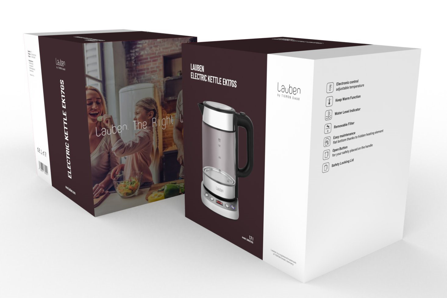 Teplotu volíte v rozmezí 60-100 °C po desetistupňových intervalech. V konvici Lauben ohřejete až 1,7 l vody naráz. Její aktuální množství vždy poznáte díky stupnici na skle. Víko konvice je opatřeno bezpečnostní pojistkou proti rozlití a otevíráte jej snadno, pomocí tlačítka umístěného na držadle.