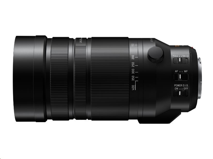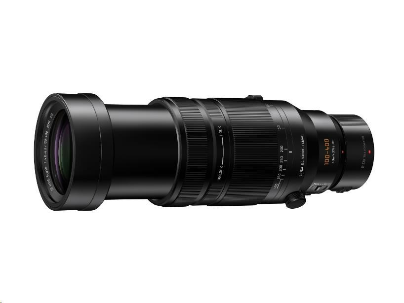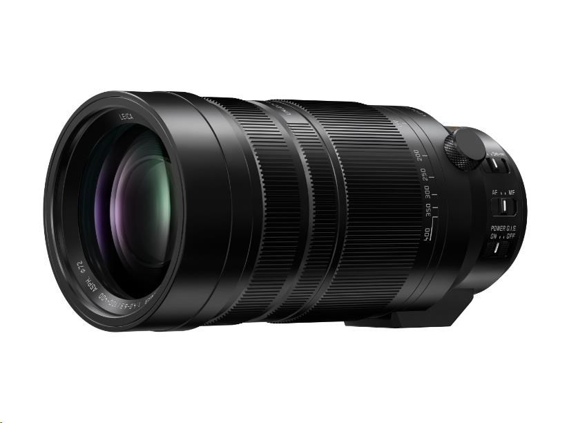 - LEICA DG VARIO-ELMAR 100-400mm / F4.0-6.3 II ASPH. / POWER O.I.S. - 9 diaphragm blades aperture F4.0 – F22 - Closest Focusing Distance 130cm (Full) / 500cm (Limit) - Maximum Magnification 0.25x / 0.5x (35mm equivalent) - Teleconvertor lens DMW-TC14 (1,4x magnification), DMW-TC20 (2.0x magnification) compatible - Fully optimized for video, dynamic aperture, quiet operation, smooth focus tracking - Focus Breathing Suppression, Linear/Non-linear focus ring control - Resistance to weather conditions, rain, dust, frost -10°C, Nano Surface Coating - 20 elements in 13 groups (1x Aspherical ED, 1x UED, 2x ED lens) - Dimensions – max. diameter 83mm, length 171.5mm, weight 985g - Filter Size 72mm.