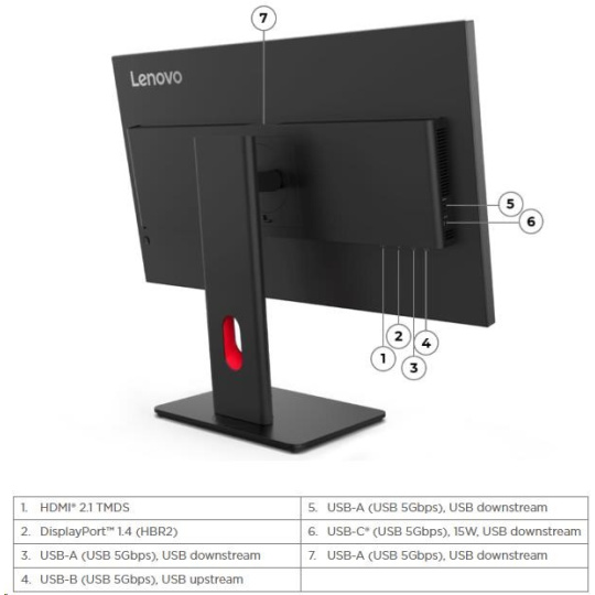 | Speciální funkce | HDR10 Compliance Lenovo ThinkColour (Lenovo Accessories and Display Manager) Podpora Lenovo ThinkColour podporuje Windows 10 & 11, Mac OS (funkce se liší v závislosti na systému). Lenovo Accessories and Display Manager je formálně Lenovo Display Control Center. LDFM (Lenovo Display Fleet Manager) Natural Low Blue Light |