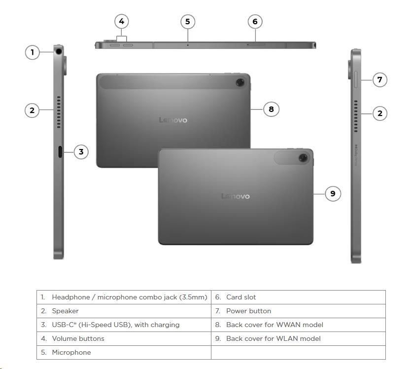 | Standartné porty | 1x USB-C® (Hi-Speed USB / USB 2.0), with charging, digital audio 1x Headphone / microphone combo jack (3.5mm) 1x Card slot |