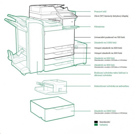 LEXMARK barevná tiskárna CX923dte, A3, 55ppm,2048 MB, barevný LCD displej, DADF, USB 2.0, LAN