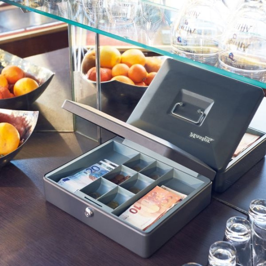 Pokladní uzamykatelný box CB-12ML slouží pro uložení hotovosti a má pevnou ocelovou konstrukci. Vyjímatelný tác s 8-mi přihrádkami pro mince, praktické držadlo a 2ks klíčů jsou součástí balení..