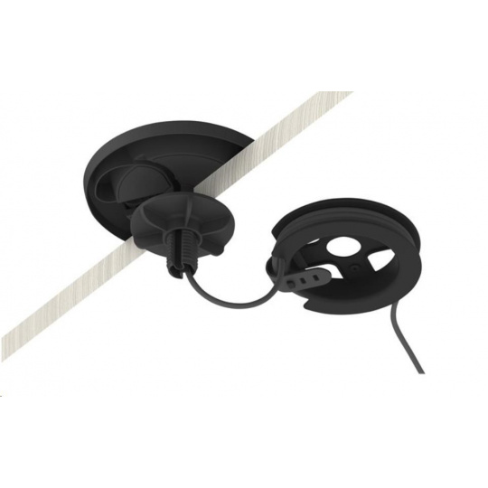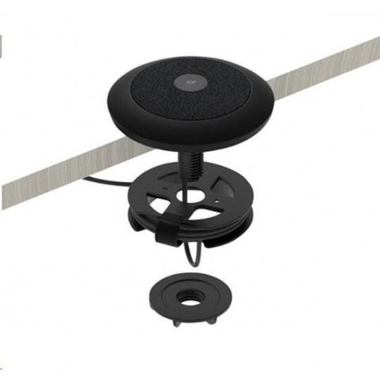 Naviňte přebývající kabeláž na kabelovou cívku, čímž dosáhnete úhledného vzhledu konferenčního stolu nejen při pohledu seshora, ale i zespoda. Připevněte kabelovou cívku přímo k držáku stolních mikrofonů nebo k jinému povrchu pomocí přiloženého upevňovacího materiálu.