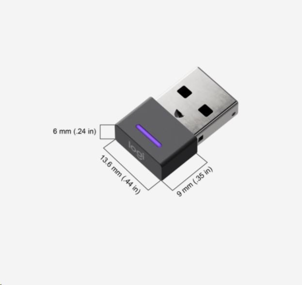 | Zone Wireless USB-C adapter: 25.1 x 16.5 x 5.3 mm * The adapter is only compatible with Logitech Zone Wireless Bluetooth Receiver. |