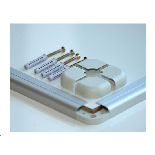 Magnetická tabule AVELI má bílý lakovaný povrch, elegantní rám z kvalitního eloxovaného hliníku, jehož součástí je praktická odkládací lišta na popisovače. Na tabuli je možné psát stíratelným fixem. Tabule má světle šedé plastové rohy, které zakryjí upevnění na zeď.