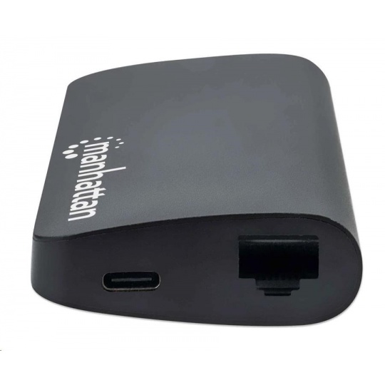 USB 3.2 Gen 1 Type-C Male to HDMI (4K@30Hz) Female, Three SuperSpeed USB-A Ports, USB-C Power Delivery (PD 3.0) Port, Gigabit RJ45 Port and SD/MicroSD Card Reader; Aluminum, Black