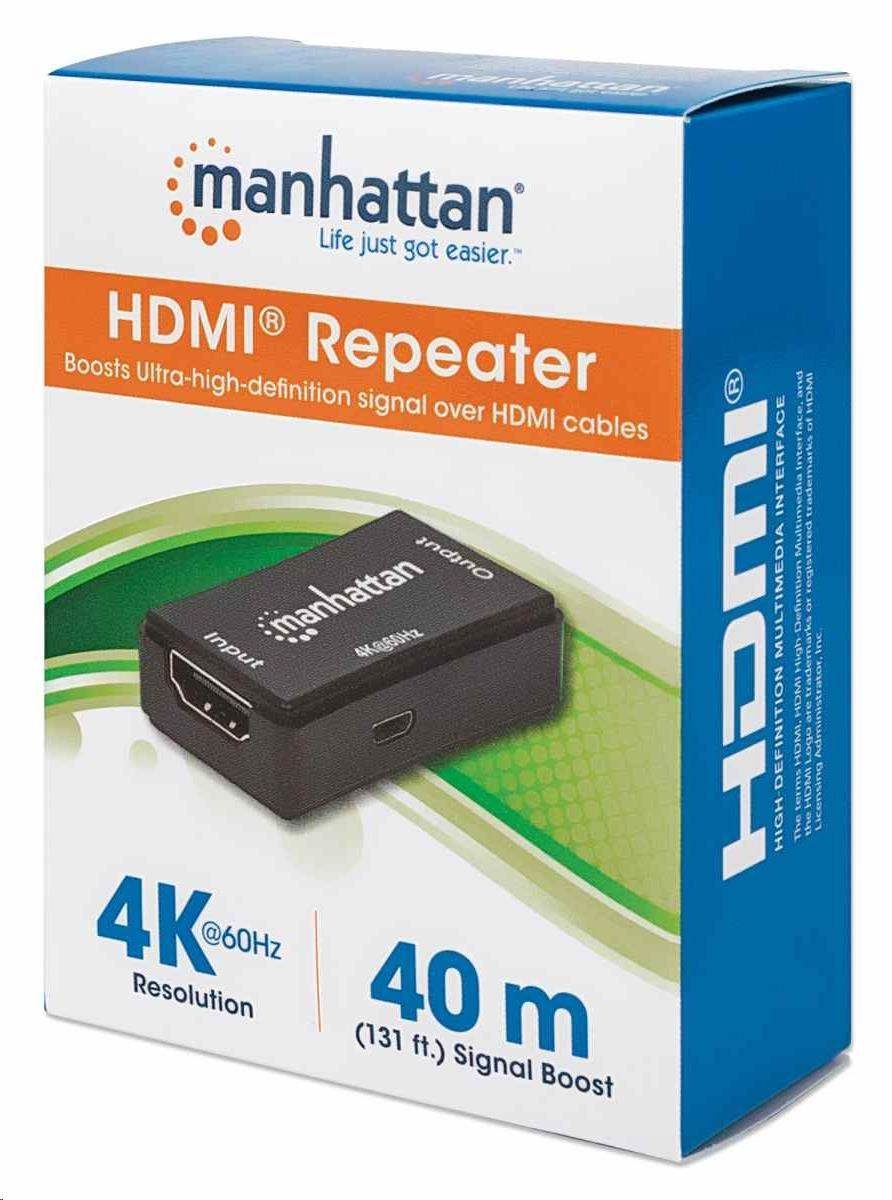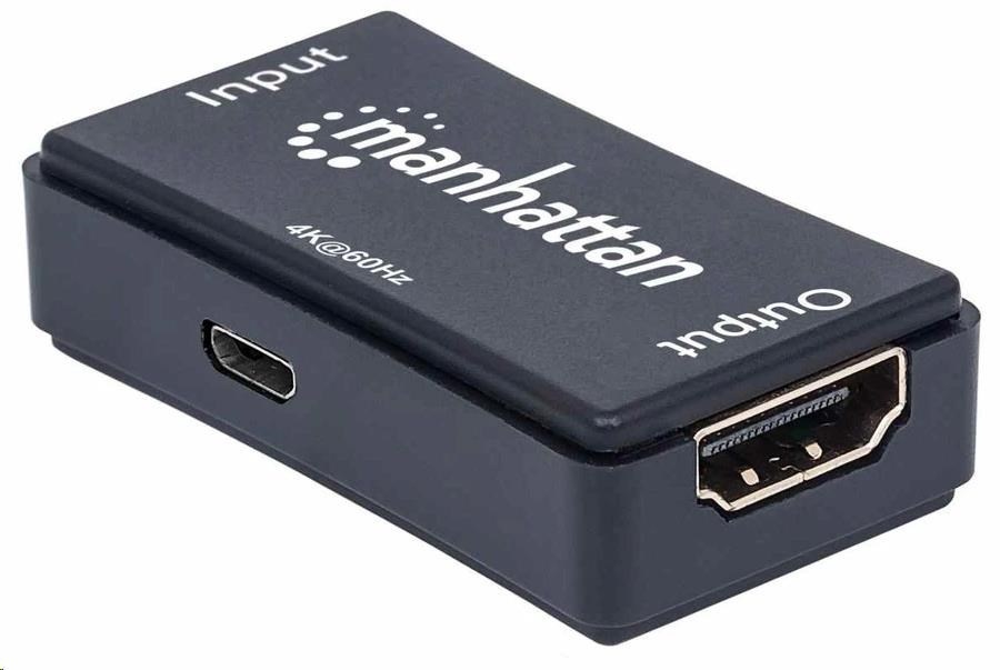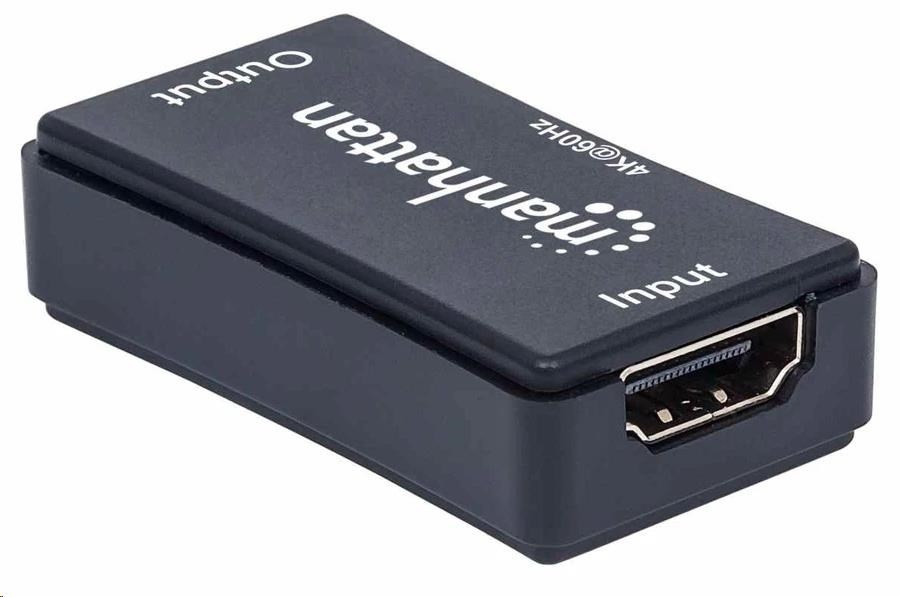 Manhattan HDMI opakovač, 4K HDMI Repeater, aktivní, do 40m, černá