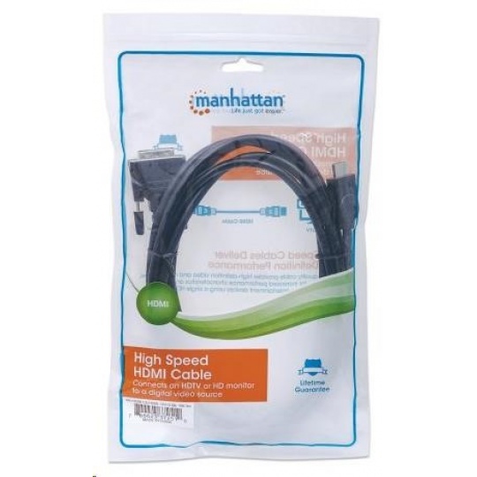 Manhattan HDMI to DVI Cables help deliver the brightest, most accurate colors and sharpest detail when connecting high-definition televisions, LCD and plasma displays, digital satellite receivers, DVD players, digital projectors and other DVI- or HDMI-equipped display devices. Manhattan HDMI to DVI Cables are engineered and constructed of quality materials to deliver dependable transmissions in digital video applications. Full foil and braided shielding, molded boots with strain relief, protective PVC jackets and gold-plated connections help provide maximum conductivity and clear, crisp signal transmissions with reduced distortion.