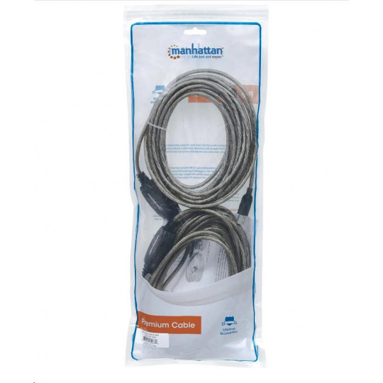 Easily overcome distance limitations to connect USB devices. Use the Manhattan Hi-Speed USB Active Cable to connect a computer USB port to a USB printer or other USB Type-B male device almost anywhere in the room. This single, non-daisy-chainable cable extension provides a convenient, uninterrupted 15 m (50 ft.) connection. The Manhattan Hi-Speed USB Active Cable with built-it repeater is fully-compliant with USB 1.1 and Hi-Speed USB 2.0 specifications to help devices operate at maximum performance. No external power or driver requirements are necessary. Plug-and-play capable and Windows/Macintosh versatility provide greater options in computer and peripheral placement and office layout.