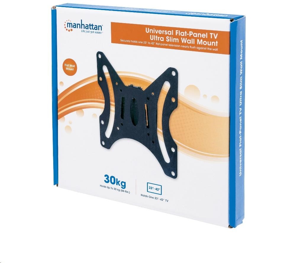 When viewing locations and TV heights are fixed at optimal positions, MANHATTAN Universal Flat-Panel TV Ultra Slim Wall Mounts create nearly flush, close-to-the-wall installations that enhance thin, modern TV silhouettes. Stationary settings ensure that images, contrasts and colors remain clear, sharp and defined. VESA-compliant and constructed of quality materials, MANHATTAN Universal Flat-Panel TV Ultra Slim Wall Mounts fit a variety of display sizes with a secure and confident above-the-floor installation. Ideal for residential, office, hospitality, classroom and conference room, digital signage and other commercial applications, MANHATTAN Universal Flat-Panel TV Ultra Slim Wall Mounts bring high-performance LCD, LED or plasma TV enjoyment front and center.