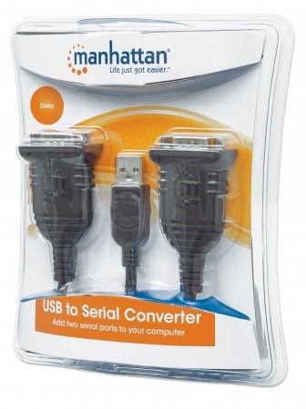 Most modern computers and laptops don't have RS232 (DB9) ports, making the use of legacy peripherals and high-tech devices which connect with COM ports almost impossible. The Manhattan USB to Serial Converter — with its serial RS232 (DB9) ports and Prolific PL-2303RA chipset — easily expands a single USB port to connect and support serial modems, barcode scanners, digital cameras, card readers, Ham/Amateur Radios, GPS, CNC machines, telescopes, embroidery machines, fuel injection controllers, PDUs, network switches and other devices.
