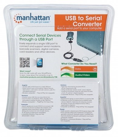 Chipsets PL-2303HXD and FTDI FT232RL configurations are also available at www.ManhattanProducts.com