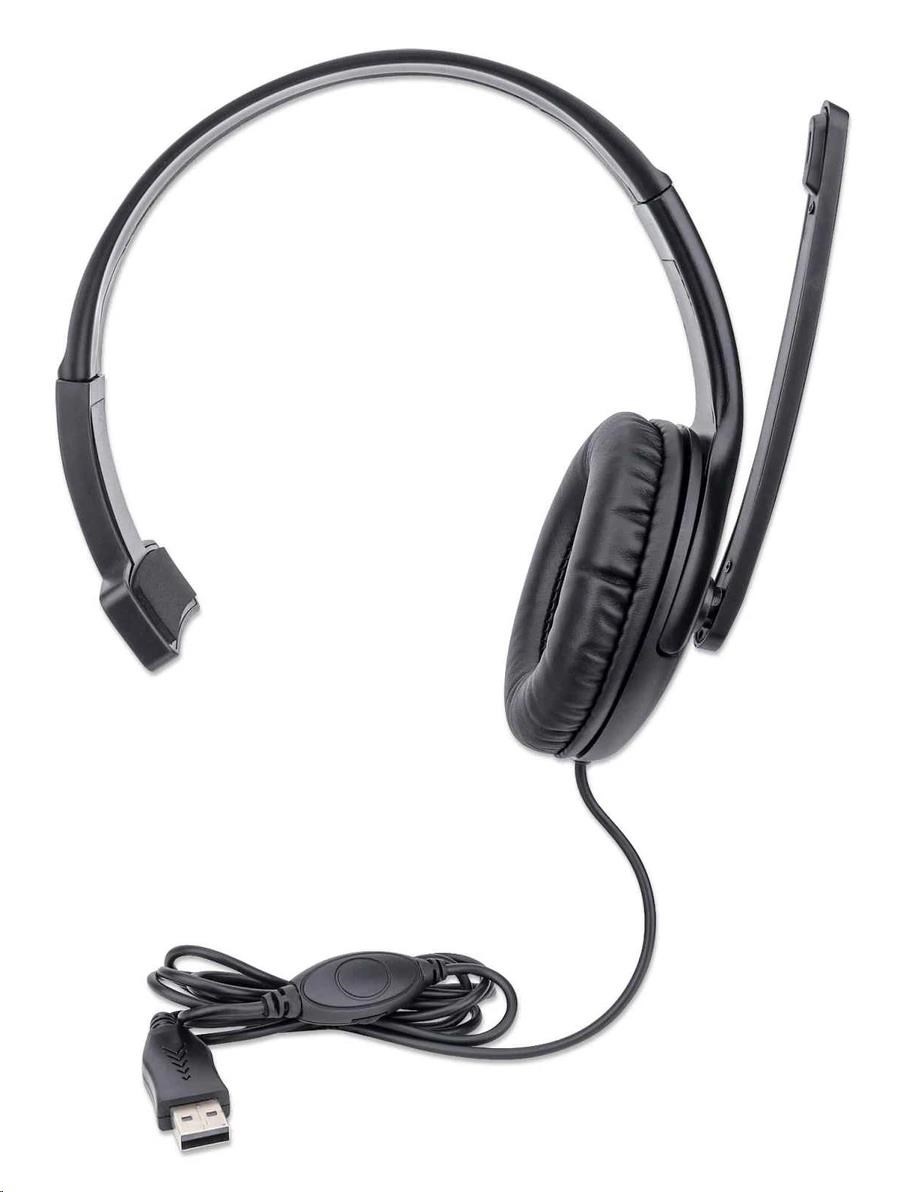 MANHATTAN Sluchátka s mikrofonem Mono USB Headset, černá