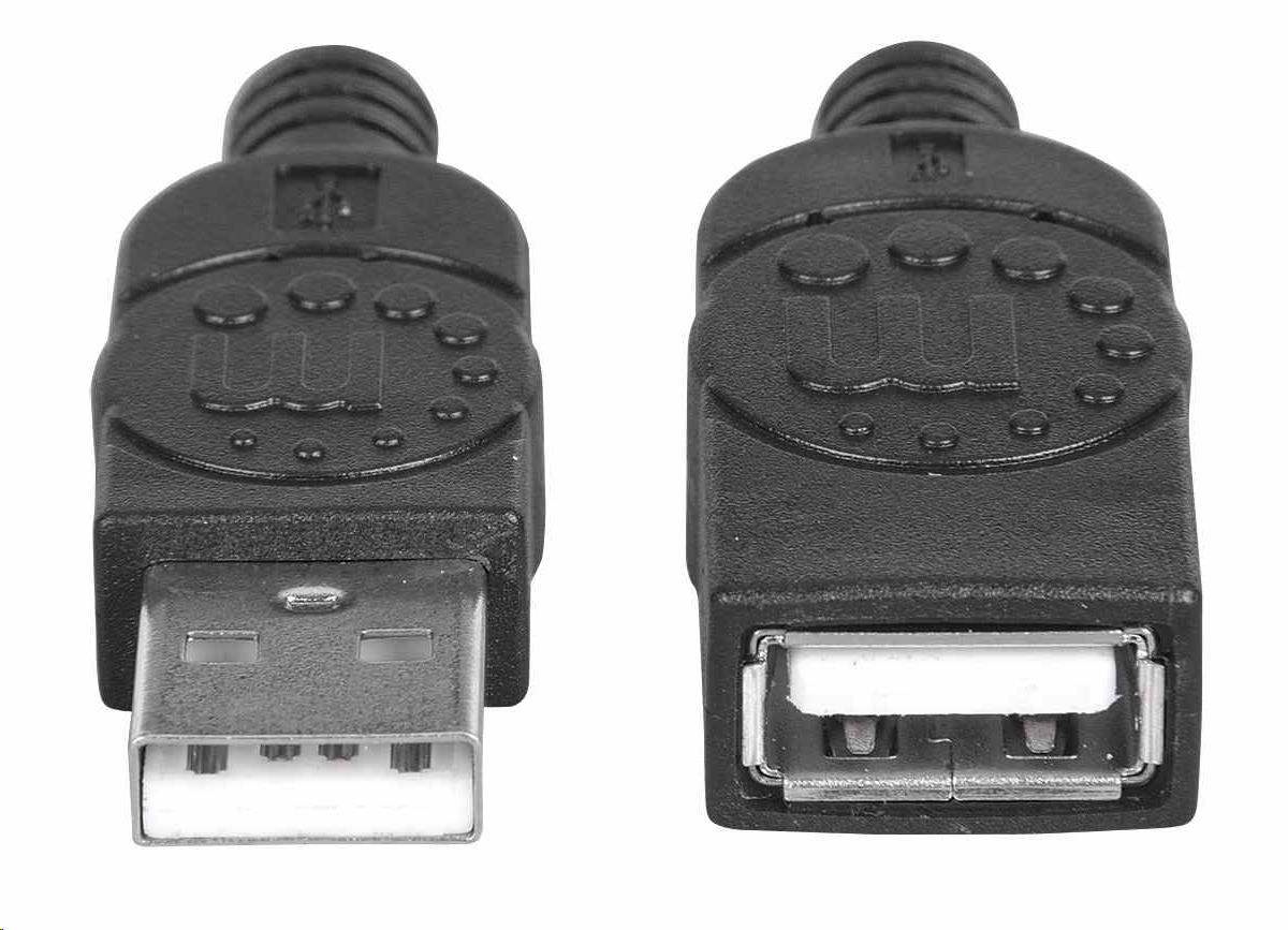Manhattan USB kabel, USB 2.0, Male na Female, 480 Mbps, 1m, černá