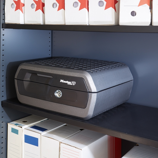 Uzamykatelný bezpečnostní kufr odolný ohni a vodě LCFW30100 z pevné ocelové konstrukce je vhodný pro uchování digitálních médií a písemností ve formátu max. A4. Objem činí 10,2l. 2ks klíčů a praktické držadlo jsou součástí balení..