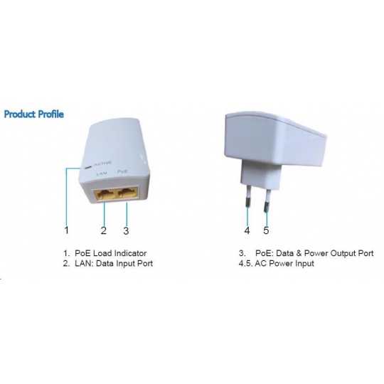 MaxLink PI15S aktivní gigabitový PoE injektor, 802.3af, 15W (48V, 0.32A)