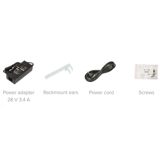 Balení obsahuje: CloudRouterSwitch CRS112-8G-4S-IN v provedení desktop, napájecí zdroj