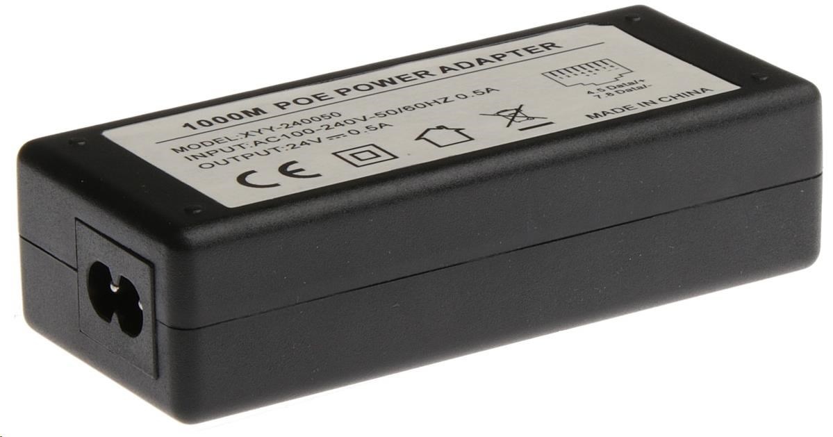 HS12-2400 je pasivní, Gigabitový, stabilizovaný PoE adaptér s uzemněním, indikační LED, výstupním napětím 24V a max. proudem 0.5A. Maximální výstupní výkon je 12W. Napětí je vedeno na těchto pinech: 4,5 (+), 7,8 (-). Součástí balení je napájecí 2-pinový kabel..