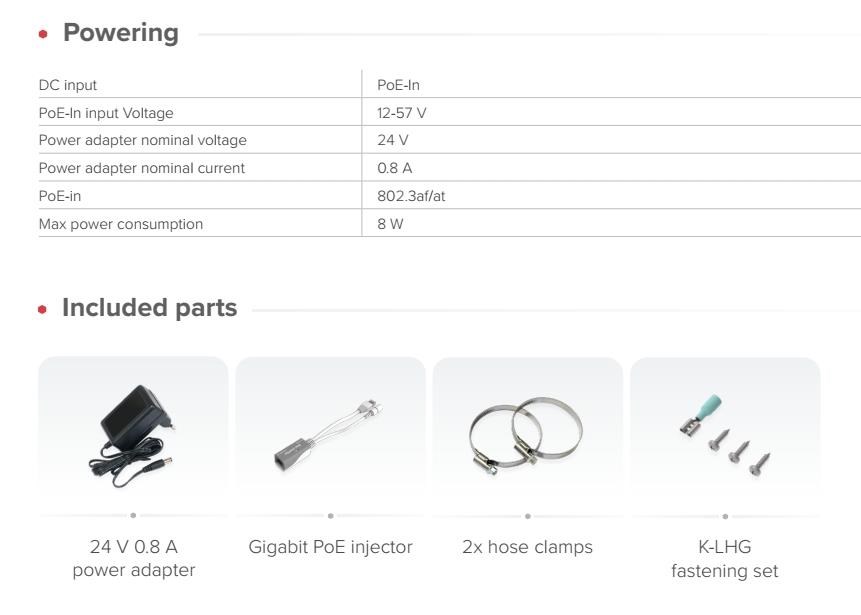 Extra výkonný venkovní aktivní prvek pro připojení k LTE na dlouhé vzdálenosti či odloučených lokalitách se slabým pokrytím signálem. LHGG LTE7 kit je navržena pro spolehlivý přístup k internetu „na poslední míli“ ve vzdálených lokalitách. Namontujte ji venku na sloup nebo stožár a připojte se i tam, kde mobilní telefony selhávají. Je vybavena směrovou anténou s vysokým ziskem 17dBi a modemem CAT7 LTE s rychlostí nahrávání až 100 Mbps, což zajišťuje vyšší výkon a lepší odezvu ve venkovských oblastech. Díky dvojnásobné kapacitě uplinku je vhodnější pro video dohled, VPN, práci na dálku a nasazení ve venkovských oblastech s více uživateli. Lehká mřížková konstrukce antény snižuje zatížení větrem a zároveň zachovává vysoký zisk. Lze ji montovat různými způsoby, včetně stožárů a sloupů. Odolný kryt a provozní teplotní rozsah od -40 °C do +70 °C zajišťují spolehlivý výkon v náročných klimatických podmínkách. Robustní chladič udržuje systém stabilní i při nepřetržitém zatížení. Hlavní funkce a vlastnosti: • VYSOKORYCHLOSTNÍ INTERNET I V ODLEHLÝCH LOKALITÁCH • RYCHLÝ MODEM CAT6 LTE • MODERNÍ DVOUJÁDROVÝ PROCESOR ARM • GIGABITOVÝ ETHERNET SE VSTUPEM POE-IN • PODPORA PÁSMA B28 • VELKÁ ANTÉNA S VYSOKÝM ZISKEM • MŘÍŽKOVÁ KONSTRUKCE ANTÉNY PRO NEJEXTRÉMNĚJŠÍ METEO PODMÍNKY RouterOS Mikrotik plně podporuje sítě IPv6 Technické specifikace: Product code: LHGGR&R11e-LTE7 CPU: Dual-core 88F3720 800 MHz CPU architecture: ARM 64bit Size of RAM 256 MB RAM type: DDR3L Storage: 16 MB Flash Number of 1G Ethernet ports: 1 MiniPCIe slots: 1 LTE modem: R11e-LTE7 TAC: 35312597 LTE Category: 7 (DL: 300 Mbps; UL: 100 Mbps) MIMO DL: 2x2 MIMO UL: 1x1 LTE FDD bands: 1 (2100 MHz) / 3 (1800 MHz) / 5 (850 MHz) / 7 (2600 MHz) / 8 (900 MHz) / 20 (800 MHz) / 28 (700 MHz) / 32 (1500 MHz) LTE TDD bands: 38 (2600 MHz) / 40 (2300 MHz) / 41 (2500 MHz) 3G Category: R8 (DL: 42.2 Mbps; UL: 5.76 Mbps) 3G bands: 1 (2100 MHz) / 3 (1800 MHz) / 5 (850 MHz) / 8 (900 MHz) Dimensions: 391 x 391 x 227 mm Operating system: RouterOS v7, License level 3 Operating temperature: -40°C to +70°C Napájení: DC input: PoE-In PoE-In input Voltage: 12-57 V Power adapter nominal voltage: 24 V Power adapter nominal current: 0.8 A PoE-in: 802.3af/at Max power consumption: 8 W.