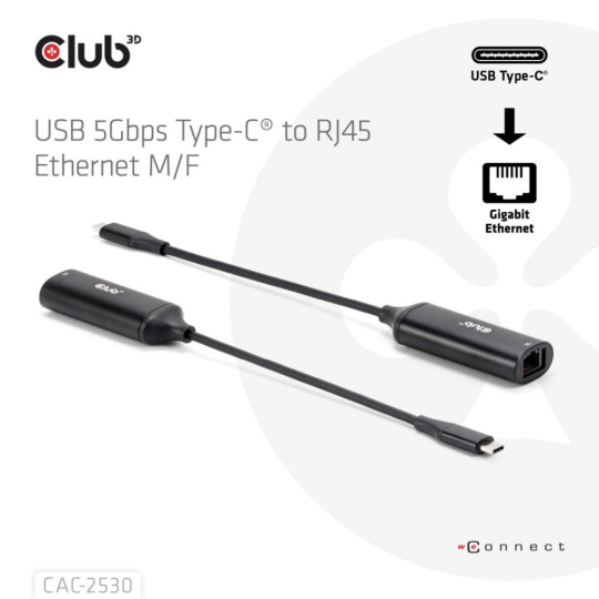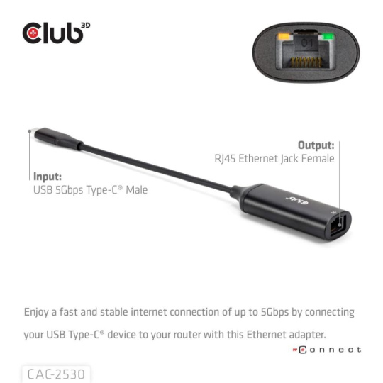 Club3D Adaptér USB-C na RJ45, 5Gb, 24cm
