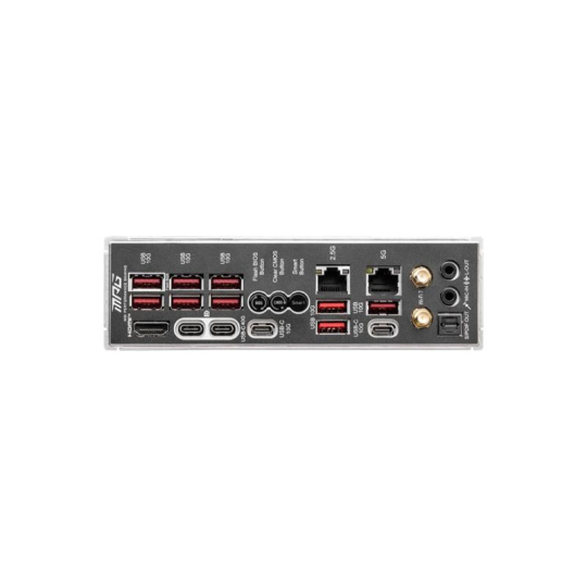 MPG X870E CARBON WIFI employs a carbon black color scheme and stylish pattern over Mystic light RGB lighting to show a different identity. It is also powerful inside by featuring 5G LAN, true Wi-Fi 7 solution, USB 40Gbps, Supplemental PCIe Power, and the latest EZ DIY designs, making this motherboard one of the best X870E ATX motherboards for Ryzen 9000 series processors.