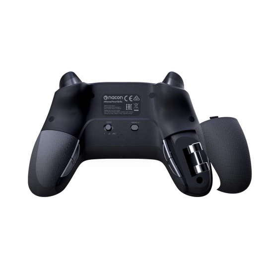 Drátový herní ovladač Nacon Revolution Pro Controller 3 disponuje nesouměrně umístěnými páčkami, rozměrnějšími spouštěmi, většími akčními i zadními tlačítky a také dvěma prostory pro závaží umožňujícími upravit hmotnost ovladače podle vašich konkrétních potřeb. Hrát můžete buď v běžném režimu pro PS4, nebo v pokročilých režimech pro PS4 a PC. S pomocí doprovodné aplikace můžete v těchto režimech upravit nastavení analogových páček i spouští, přiřadit libovolná tlačítka k tlačítkům zkratek, přepínat mezi čtyřsměrným nebo osmisměrným nastavením směrového ovladače, upravit sílu vibrací v úchopech, změnit barvu světelného kruhu kolem pravé páčky nebo nahrávat do ovladače vlastní herní profily, mezi kterými poté můžete bleskurychle přepínat.
