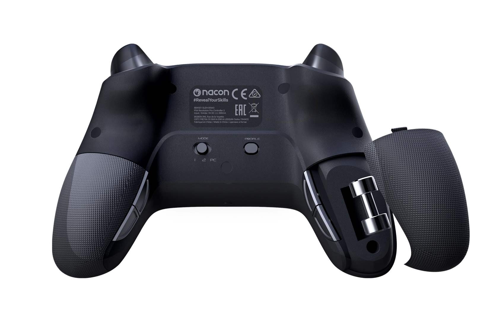 Drátový herní ovladač Nacon Revolution Pro Controller 3 disponuje nesouměrně umístěnými páčkami, rozměrnějšími spouštěmi, většími akčními i zadními tlačítky a také dvěma prostory pro závaží umožňujícími upravit hmotnost ovladače podle vašich konkrétních potřeb. Hrát můžete buď v běžném režimu pro PS4, nebo v pokročilých režimech pro PS4 a PC. S pomocí doprovodné aplikace můžete v těchto režimech upravit nastavení analogových páček i spouští, přiřadit libovolná tlačítka k tlačítkům zkratek, přepínat mezi čtyřsměrným nebo osmisměrným nastavením směrového ovladače, upravit sílu vibrací v úchopech, změnit barvu světelného kruhu kolem pravé páčky nebo nahrávat do ovladače vlastní herní profily, mezi kterými poté můžete bleskurychle přepínat.