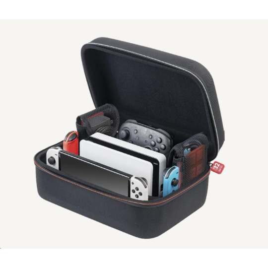 • Samostatné přihrádky určené pro bezpečné uložení herní konzole včetně připojených ovladačů Joy-Con 2, dokovací stanice a držáku Joy-Con 2 Charging Grip nebo nového ovladače Pro Controller.