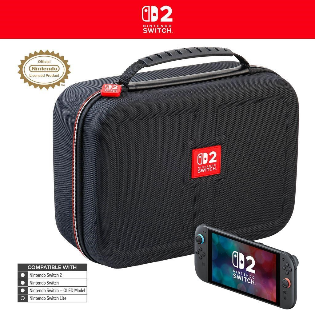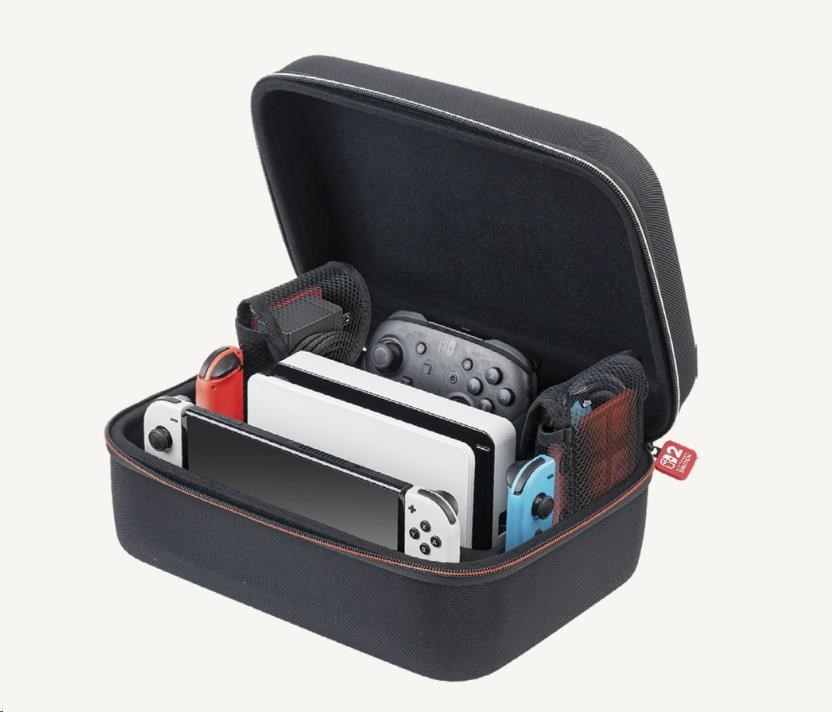 • Luxusní cestovní brašna pro uložení herní konzole Nintendo Switch 2 včetně veškerého příslušenství. Kompatibilní také s konzolemi Switch a Switch – OLED Model, včetně jejich příslušenství.