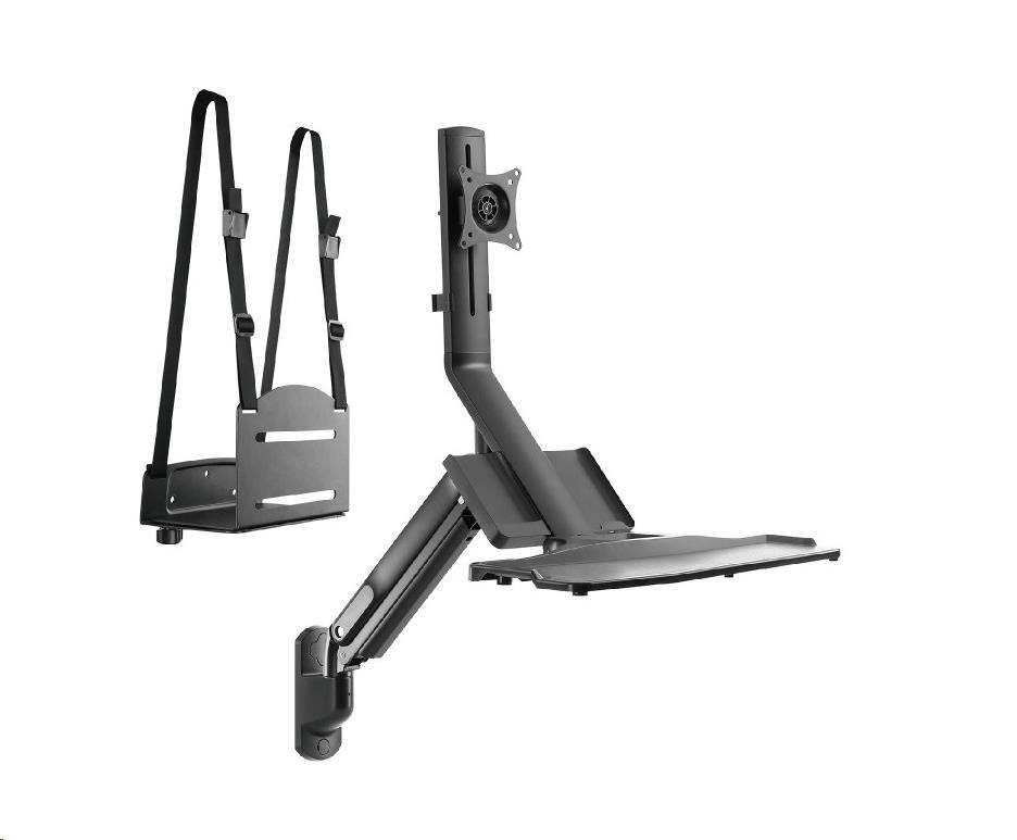Nástěnná pracovní stanice monitor, klávesnice, PC Fiber Mounts M8C38 Kompletní pracovní stanice, držák monitoru 17-32", klávesnice a PC Toweru Kvalitní nástěnný systém pro vytvoření pracovní nebo informační stanice - 3D polohovatelný držák na monitory 17-32" včetně poličky na klávesnici i s myší + univerzální nástěnný držák na PC Tower. Plná polohovatelnost držáku monitoru s policí - otáčení, naklápění, výškové polohování, rotace monitoru, korekce roviny, možnost zaklopení police. Police na klávesnici (a myš) má rozměr 660 x 220mm, možnost naklopení nebo zaklopení. Na držáku je i přihrádka na vizitky, katalogy apod. Nástěnný držák na PC Tower má nosnost 15kg. Barevné provedení černé. Záruka 3 roky. Plnohodnotná nástěnná pracovní stanice na monitor, klávesnici s myší a PC Tower, plně polohovatelné, TOP kvalita - Fiber Mounts M8C38 Technické údaje: maximální hmotnost monitoru 9kg maximální hmotnost PC Toweru 15kg velikost monitoru 17" až 32" držák monitoru podporuje VESA 75x75 a 100x100 kompletní polohovatelnost držáku monitoru s policí otáčení do stran, naklápění, nastavení výšky a vzdálenosti od zdi výškové polohování až o 515mm funkce pivot držáku monitoru police na klávesnici o rozměrech 660x220mm možnost náklonu až 5°, možnost zaklopení k monitoru nástěnný držák na PC Tower včetně popruhů instalační materiál systém vedení kabeláže barevné provedení černé záruka 3 roky.