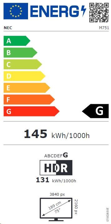 | Energetická účinnost | Spotřeba energie: Třída energetické účinnosti: 145 kWh/1000 h: G; LED podsvícení |