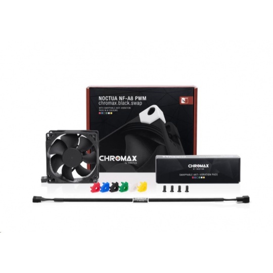 Řada NF-A8 se zasloužila o přední volbu při výběru 80mm větráčků množstvím ocenění a doporučení od technických časopisů a stránek po celém světě. NF-A8 PWM chromax.black.swap kombinuje tichý chod této řady a elegantní celočerný design řady chromax.black. Balení obsahuje také sadu protivibračních podložek pro ty, kteří si rádi svůj stroj barevně sladí. Kvalitu chodu a spokojenost také zaručí SSO2 ložisko, více než 150000 hodin MTTF a 6 let záruky u výrobce.