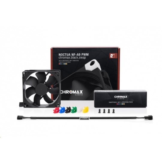 Řada NF-A9 se zasloužila o přední volbu při výběru 92mm větráčků množstvím ocenění a doporučení od technických časopisů a stránek po celém světě. NF-A9 PWM chromax.black.swap kombinuje tichý chod této řady a elegantní celočerný design řady chromax.black. Balení obsahuje také sadu protivibračních podložek pro ty, kteří si rádi svůj stroj barevně sladí. Kvalitu chodu a spokojenost také zaručí SSO2 ložisko, více než 150000 hodin MTTF a 6 let záruky u výrobce.