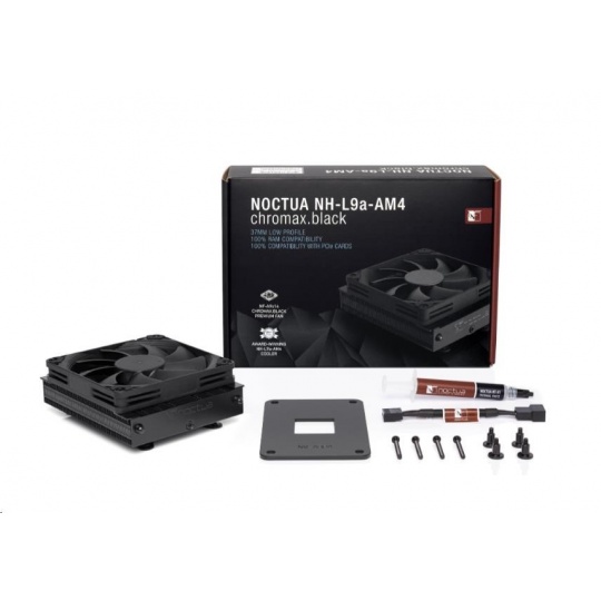 NH-L9a-AM4 chromax.black je celočerná verze oblíbeného, vysoce kompaktního a tichého nízkoprofilového chladiče NH-L9a-AM4, navrženého pro použití v nízkofaktorových kejsech a HTPC prostředí. Ačkoliv poskytuje vysoce kvalitní výkon, je nevhodný pro overclockery a doporučený pouze pro CPU/APU do 95W TDP. Navštivte stráky výrobce, http://noctua.at/en/nh_l9a_am4_tdp_guidelines, abyste zjistili, je-li pro váš procesor tento chladič vhodný.
