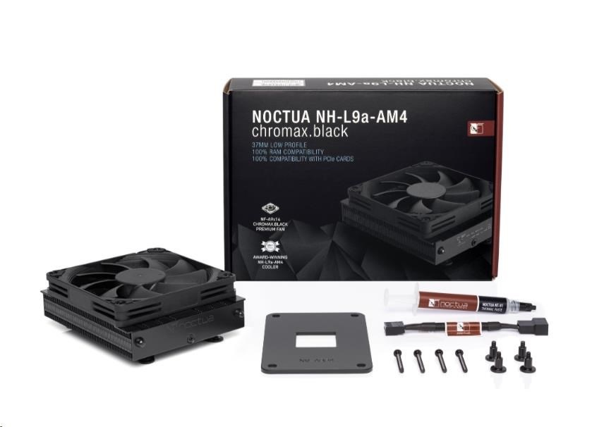 NH-L9a-AM4 chromax.black je celočerná verze oblíbeného, vysoce kompaktního a tichého nízkoprofilového chladiče NH-L9a-AM4, navrženého pro použití v nízkofaktorových kejsech a HTPC prostředí. Ačkoliv poskytuje vysoce kvalitní výkon, je nevhodný pro overclockery a doporučený pouze pro CPU/APU do 95W TDP. Navštivte stráky výrobce, http://noctua.at/en/nh_l9a_am4_tdp_guidelines, abyste zjistili, je-li pro váš procesor tento chladič vhodný.