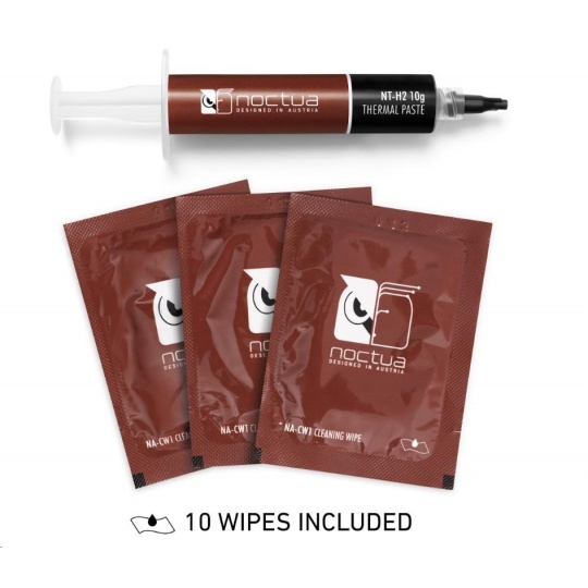 NT-H2 je dále vylepšená druhá generace oceněného hybridního tepelného vedení Noctua. Kombinací osvědčených vlastností ikonické pasty NT-H1, vynikající snadnosti použití a proslulé dlouhodobé stability s novým, jemně vyladěným složením mikročástic pro ještě lepší tepelný výkon je NT-H2 pastou pro nadšence pro nejvyšší nároky. Ať už jde o vzduchové nebo vodní chlazení, aplikace pro CPU nebo GPU, přetaktování nebo tiché systémy: NT-H2 bude důsledně poskytovat vynikající výsledky a díky přiloženým čisticím ubrouskům se stejně snadno odstraňuje jako nanáší.