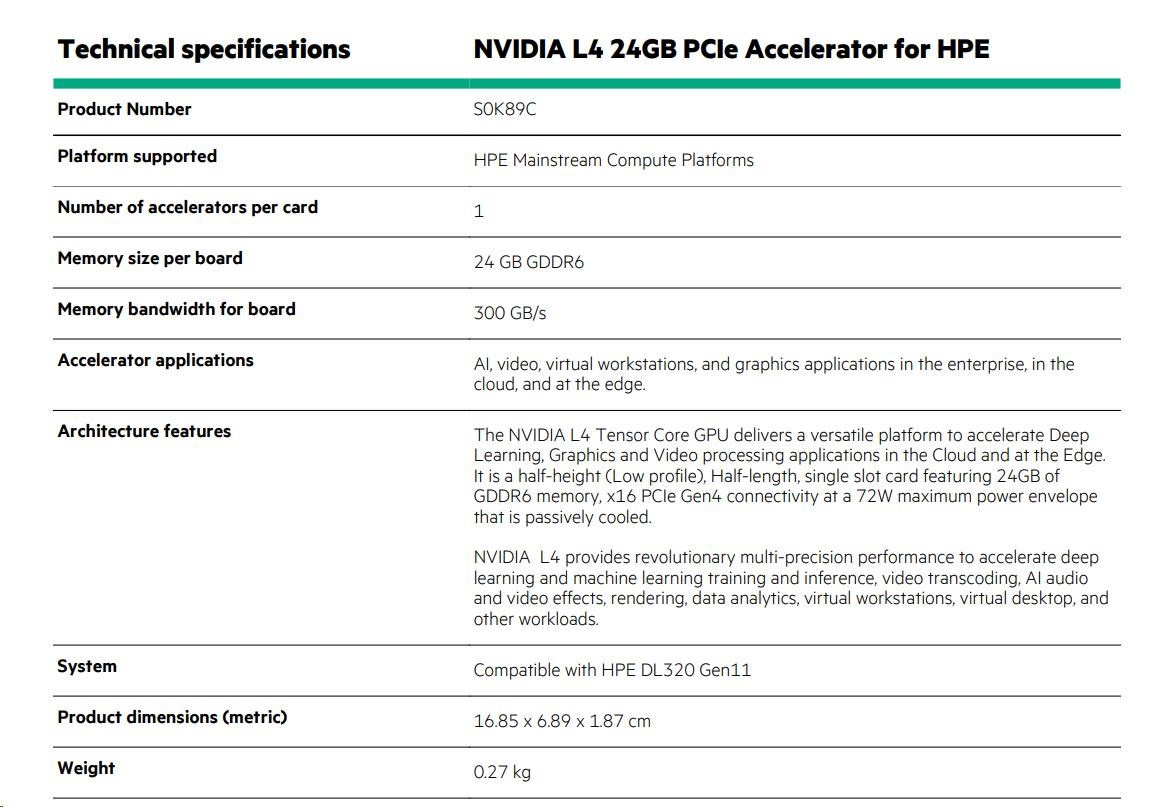 NVIDIA L4 24GB PCIe Accelerator for HPE