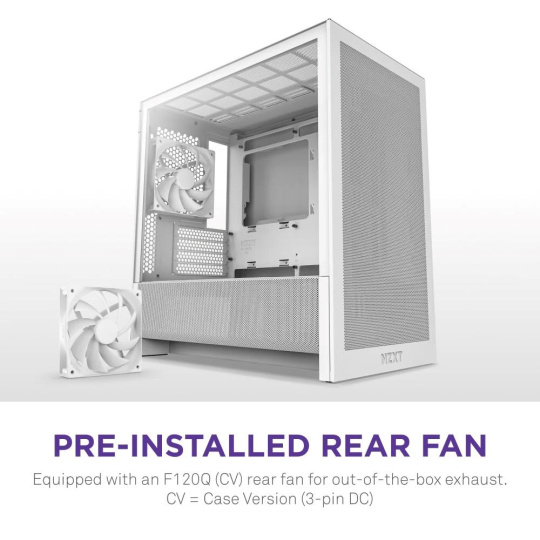 Skříň H3 Flow micro-ATX kombinuje prostorově úsporný design s vysokým výkonem. Je navržena tak, aby podporovala komponenty plné velikosti, a je vybavena panely s velmi jemnou síťovinou a větraným krytem zdroje, které udržují konzistentní a optimalizované proudění vzduchu v celé sestavě.
