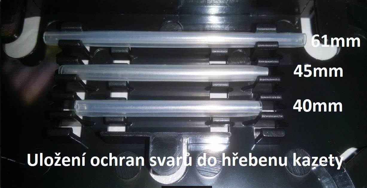 Samosmršťovací teplem, délka 45mm, určená k ochraně svarku po svaření. Vyztužená ocelovým drátem 1mm, zamezuje ohybu. Vnitřní průměr před zatavením 1,2mm. Kruhový. Vnější rozměr po zatavení 2,4mm. Teplota pro zatavení je nejméně 110° C.