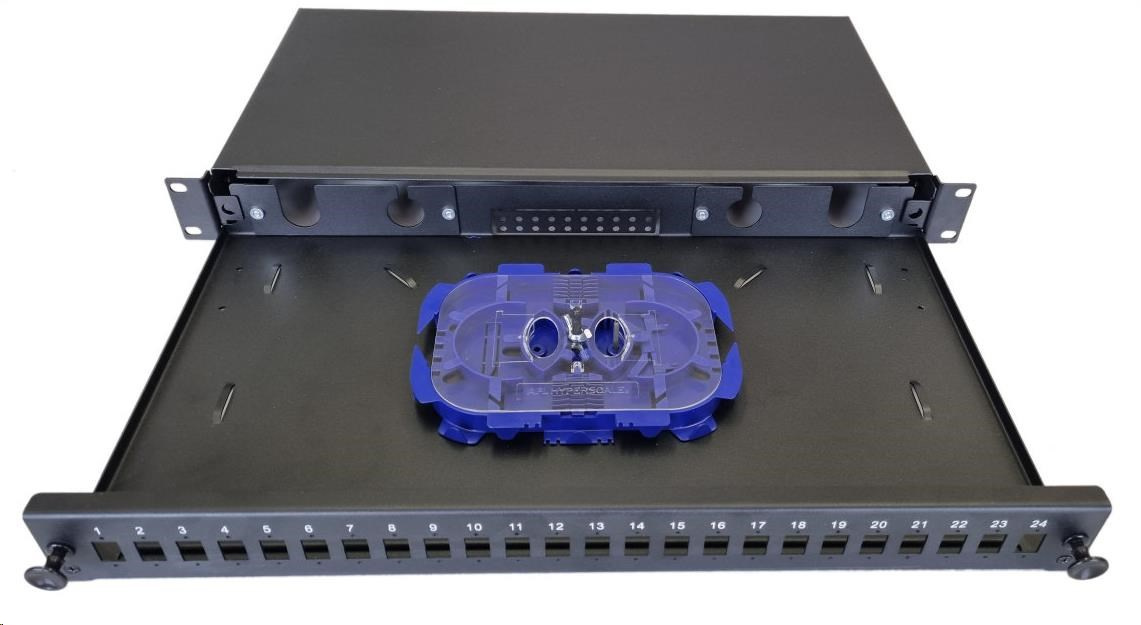 Optická vana výsuvná 1U, 24x SC simplex (24x LC duplex, 24x E2000) s kazetou OPTRONIC pro 24 svárů, černá