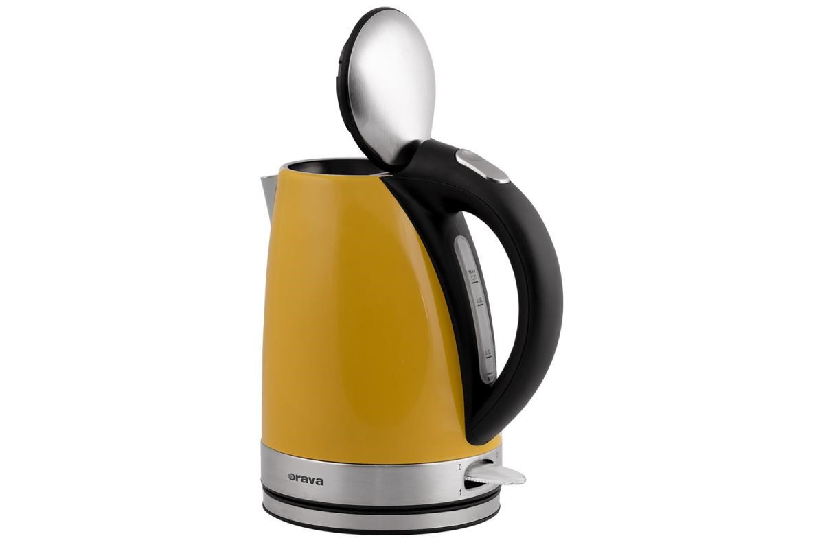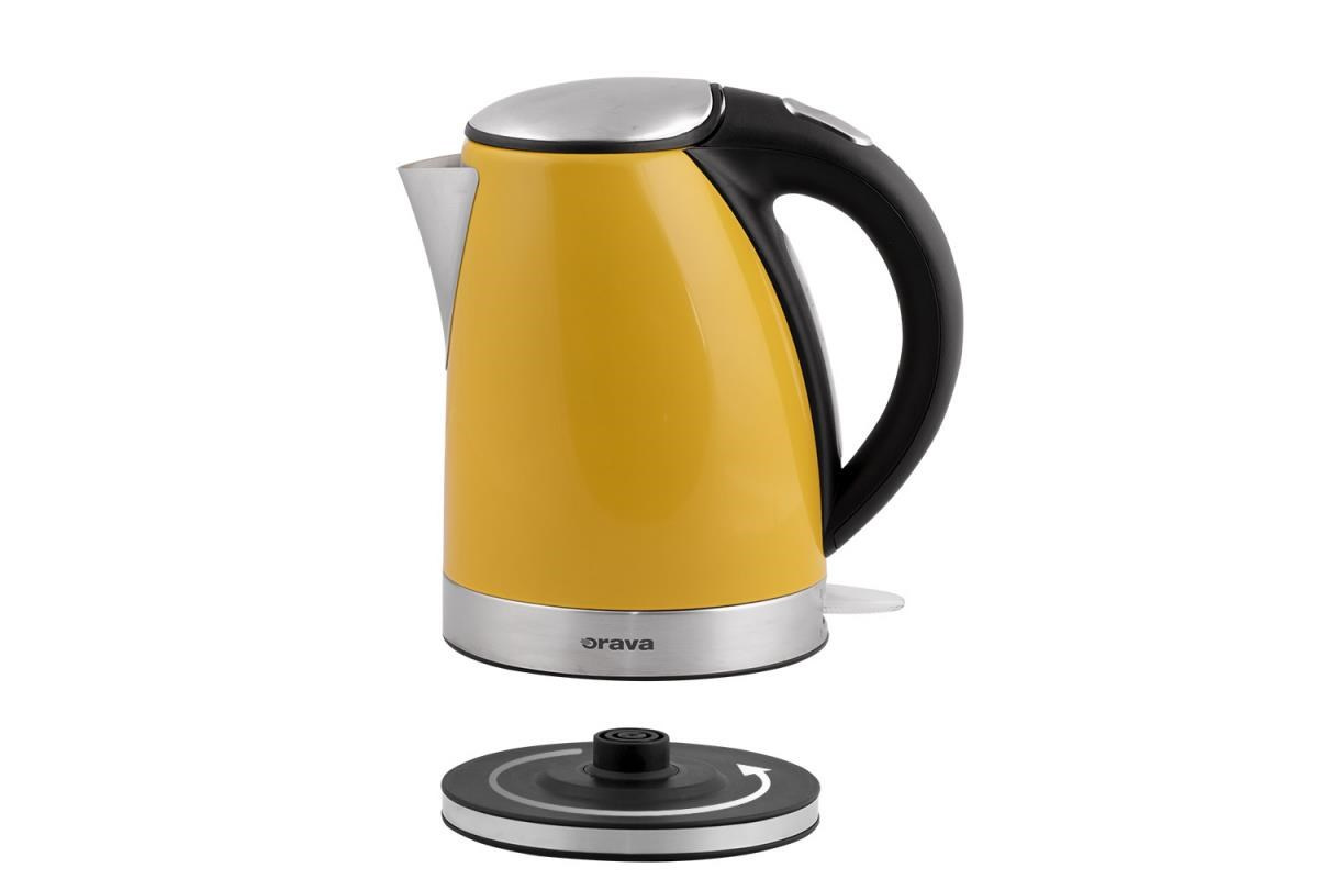 Rychlovarná konvice Orava VK-3217Y ve žluté barvě . Konvice je nerezová s objemem 1,7 litru.