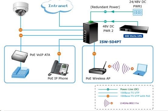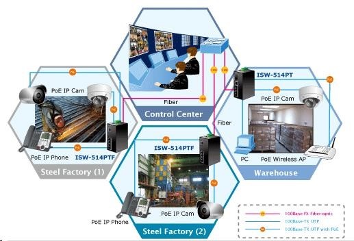 Planet switch ISW-514PTF, průmysl.verze 4x10/100+1x100BaseFX (SFP), DIN, IP30, -40 až 70°C, 12-48V