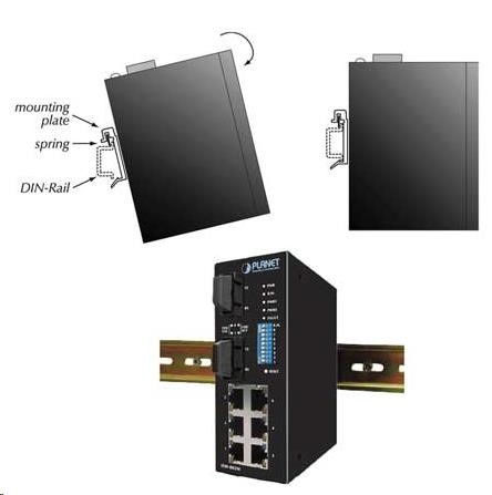 Planet switch ISW-514PTF, průmysl.verze 4x10/100+1x100BaseFX (SFP), DIN, IP30, -40 až 70°C, 12-48V Přepínače pro průmyslový Ethernet jsou určeny do náročných provozních podmínek s velkým rozsahem pracovních teplot, nejistým napájením a častými otřesy. Přepínače řady ISW se snadno instalují na standardní DIN lištu nebo přímo na zeď a umožňují nasazení dobře známé Ethernetové technologie i v průmyslovém prostředí. Stejně tak jsou vhodné pro instalace do venkovně umístěných skříní s velkým kolísáním pracovních teplot (typicky bezdrátové a MAN ISP aplikace nebo kamerové systémy). Verze s POE IEEE 802.3af umožňuje přímo napájet až 4 koncová zařízení, je tak ideálním prvkem pro aplikace se sníženou možností napajení koncových zařízení! Vlastnosti: 4 porty 10/100 Base-TX, Switching, Full Duplex (100/200 Mbps), Auto-Negotiation (10/100 Mbps) na všechny implementace PoE IEEE 802.3af injektory se zatížitelností 15,4W/port, celkově až 60W 1x 100FX, SFP slot pro instalaci modulů MFB-TFX nebo MFB-TF20 2k MAC adres automatická detekce přímý/křížený kabel na každém portu pole LED indikátorů pro diagnostiku provozu instalace na DIN lištu, montážní díl součástí instalace na zeď, montážní díl součástí krytí IP30, skříň celohliníková napájení: 24/48V DC redundantní, připojení možné ze dvou různých zdrojů (nejsou součástí balení) ochrana proti přepólování, připojení napájení na svorkovnici, umístění na spodním panelu (nepřekáží při montáži na zeď) alarmový výstup aktivovaný při výpadku napájení zařízení je odolné proti pádu (IEC-60068-2-32) z výšky 75cm na všechny dopadové části zařízení je odolné proti vibracím (IEC-60068-2-6) 10-500-10Hz, 4x g, 0,5oct/min zařízení je odolné proti přetížení krátkodobému zrychlení 50x g, dlouhodobému 4x g (IEC-60068-2-27) EMI/EMS, elektromagnetická kompatibilita a slučitelnost dle CE EN-6100-4-2,3,4,5,6 elektrická bezpečnost dle CE EN-60950 pracovní teplota -40 až 75 st. C, vlhkost do 90% hmotnost: 842g rozměry: 135 x 87.8 x 56 mm.